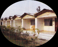 | Cottages from a distance | Buddha Statue in Compound | Bed Room |
